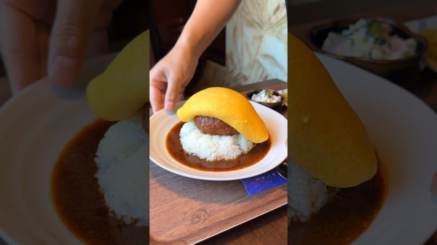 煮込みハンバーグを挟んだ豪快オムライス!飲めそうなくらいトロトロな半熟オムレツが!たまらない【馳走おがた:福岡久留米】