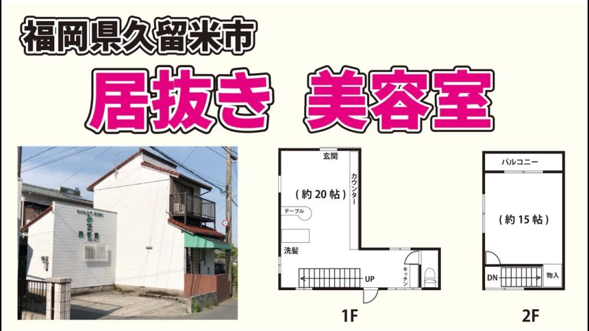 600万!美容室居抜き物件【福岡県久留米市山川町】築35年木造2階建て
